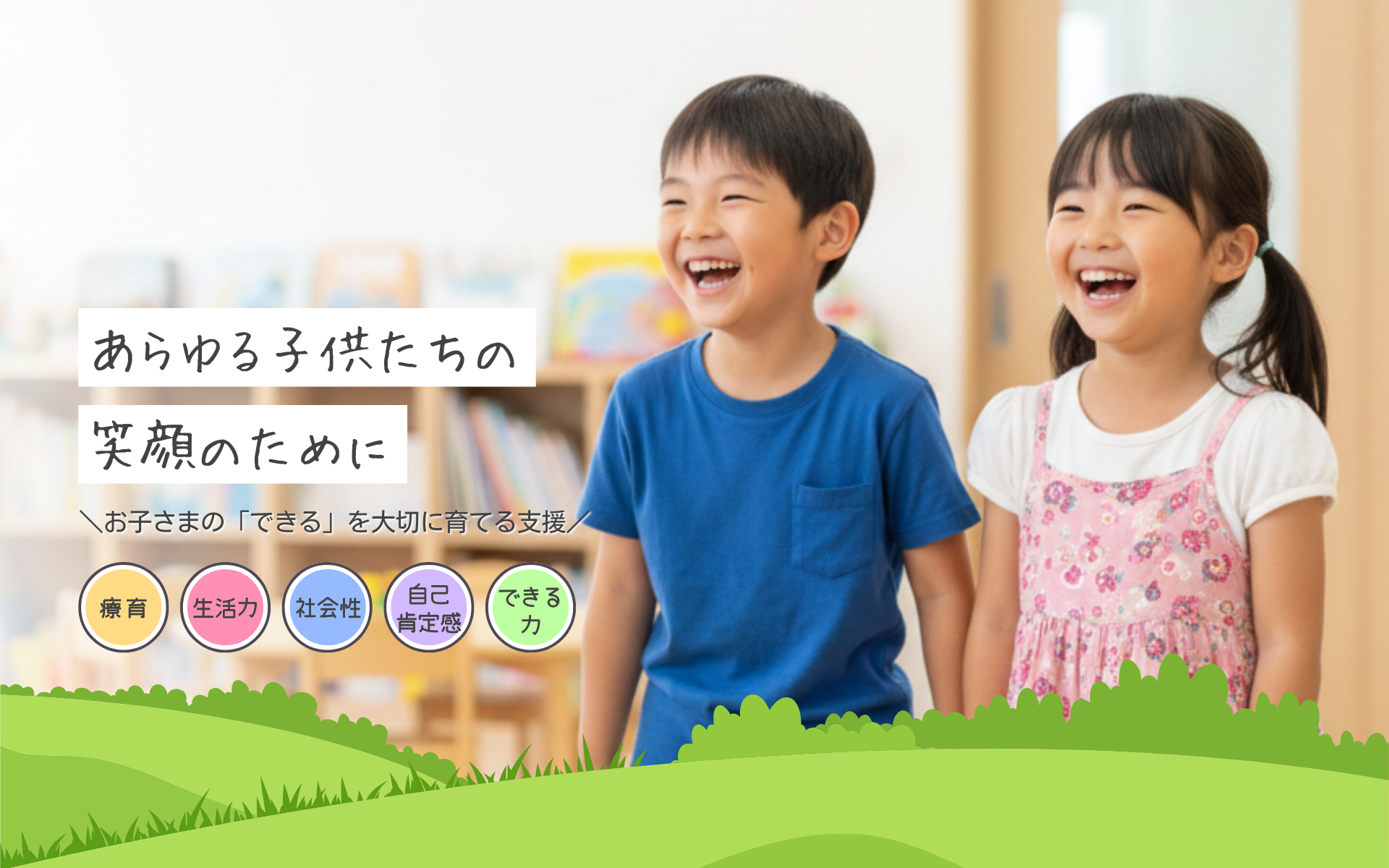 安心できる環境の中で、学び・遊び・療育を通して子どもたちの笑顔と成長を育みます。