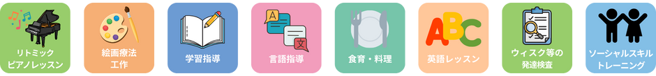 音楽・芸術・学習・運動など多彩なプログラムを、経験豊富な専門スタッフが担当します。学校教諭資格を持つ指導員による学習支援、栄養士による食育、ピアノ講師による音楽レッスンなど、資格と経験を活かした指導でお子さまの成長をサポートします。