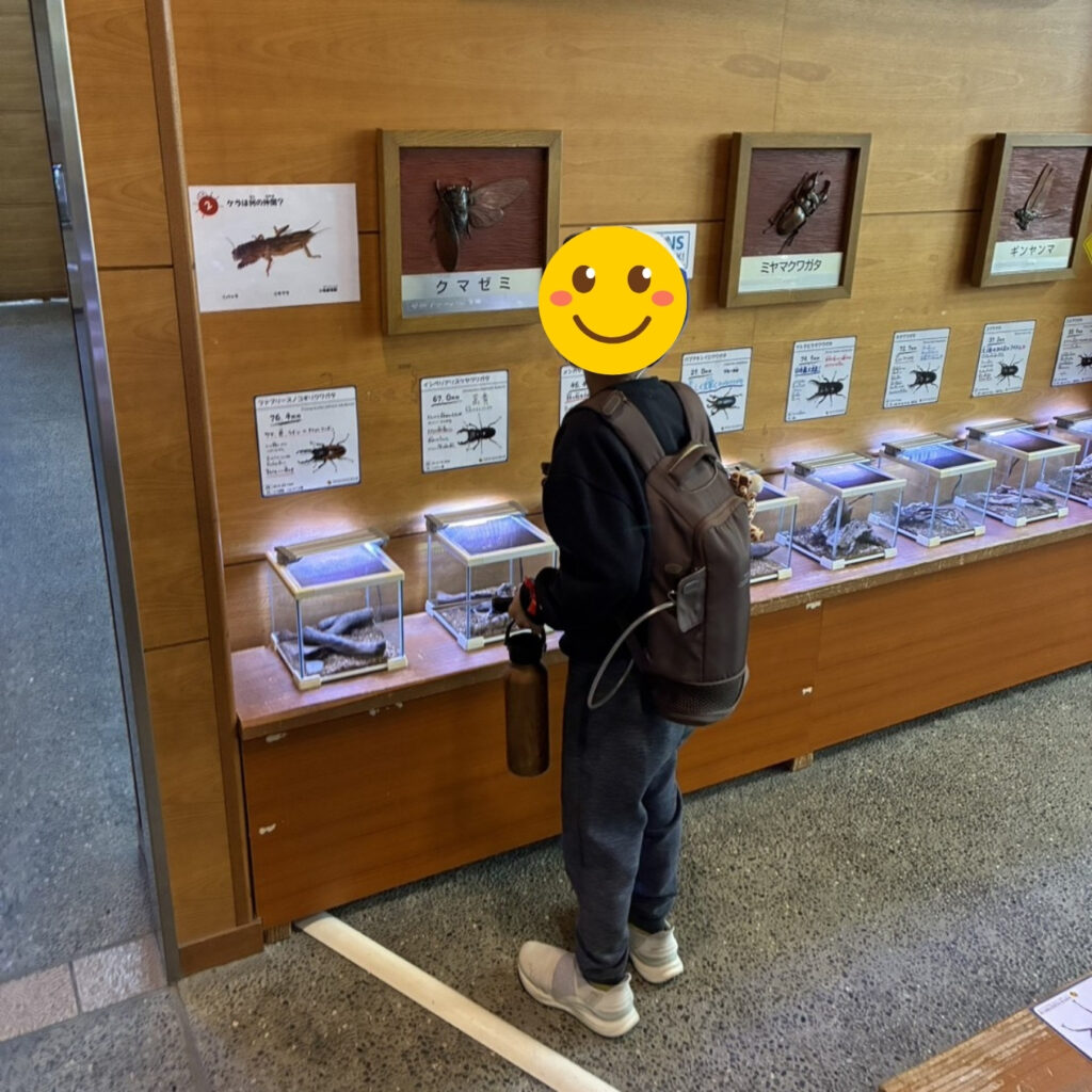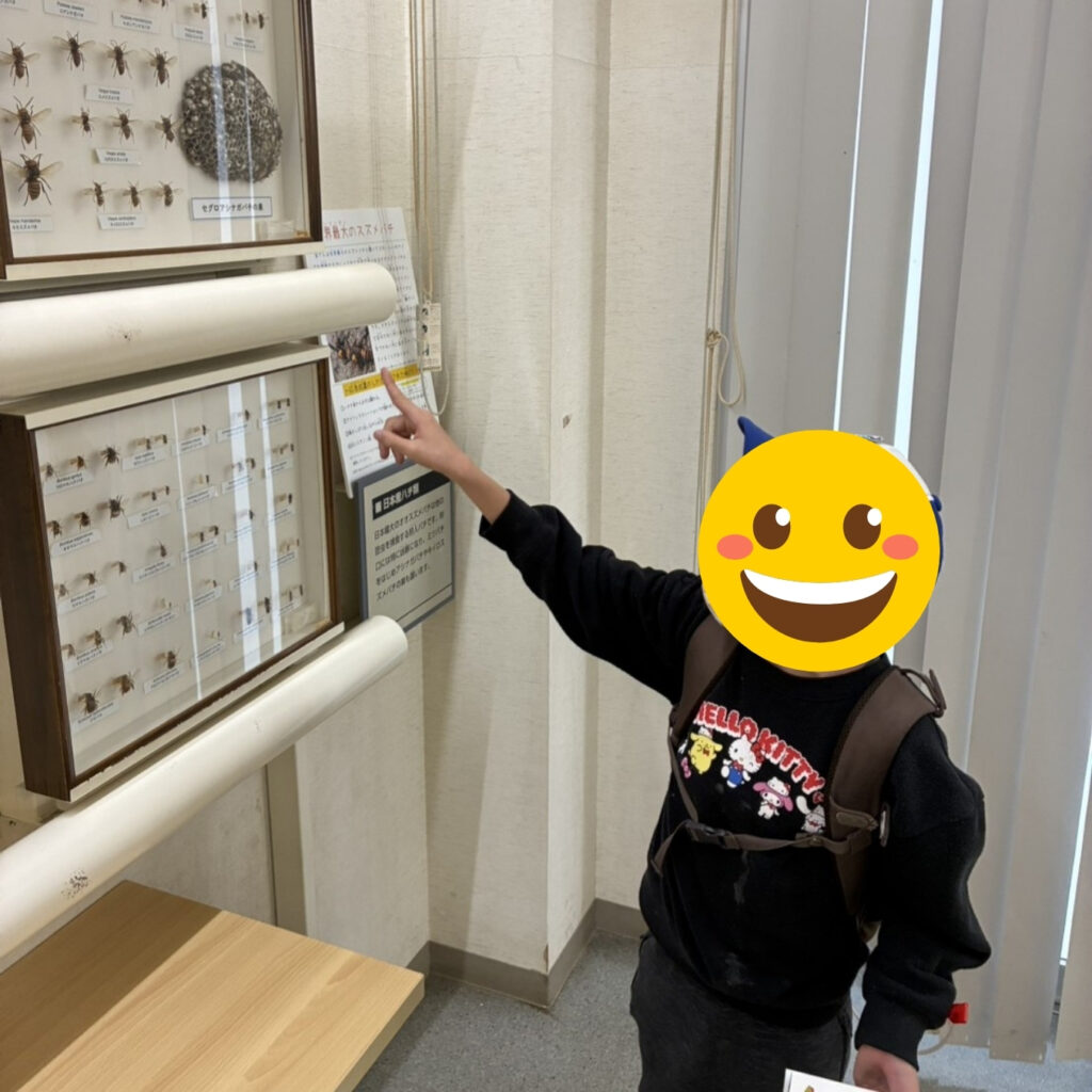 園内では、蜂やカブトムシをはじめ、さまざまな昆虫の展示を見ることができ、子どもたちは興味深そうに観察していました。昆虫だけでなく、ウーパールーパーなどの生き物も見ることができ、普段なかなか出会えない生き物に触れる良い機会となりました。