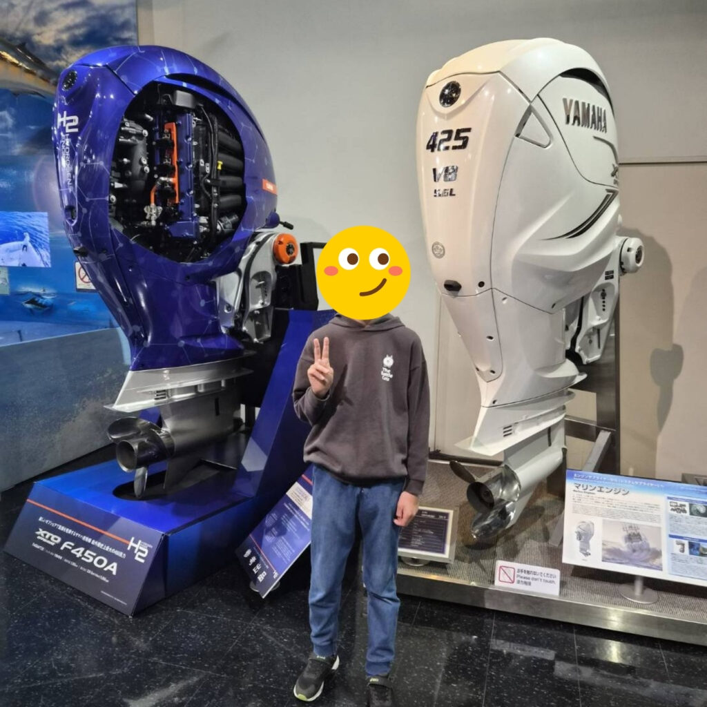館内には、歴代のバイクや世界を駆けたレーシングマシン、迫力ある大型エンジンなどが展示されており、間近で見る実物の質感に、子どもたちは興味深く見入っていました。